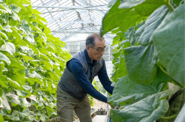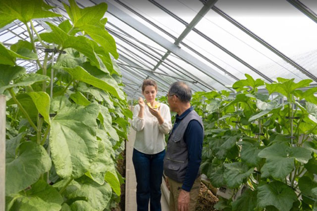 泽木家族是当地约 200 位皇冠蜜瓜种植者之一,他家的农园整齐有序,依偎在一片长满树林的山坡旁。泽木胜是第二代蜜瓜瓜农,与他的儿子泽木俊文以及两人的妻子一起耕作。