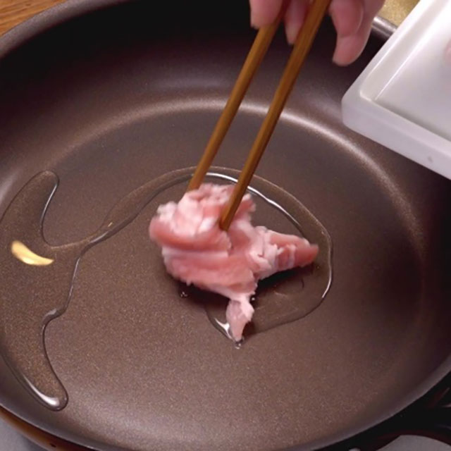 Heat vegetable oil in a frying pan over medium heat and lightly cook the pork.